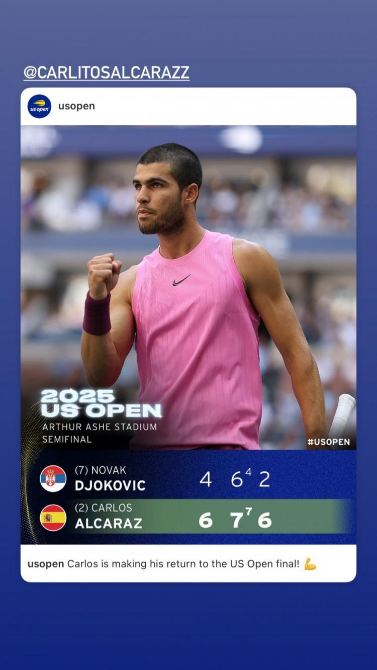 直播吧9月6日讯 今天,勇士球星巴特勒更新社媒,转发了西班牙球手阿尔卡拉斯在美网3-0击败德约科维奇的战报。